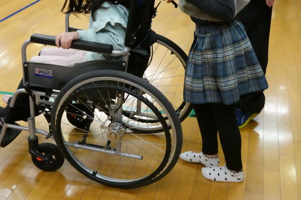 小学生による高齢者疑似体験学習と障がい者車イス体験学習をサポート